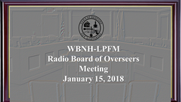 - WBNH-LPFM Radio Board of Overseers Meeting - Monday, January 15, 2018